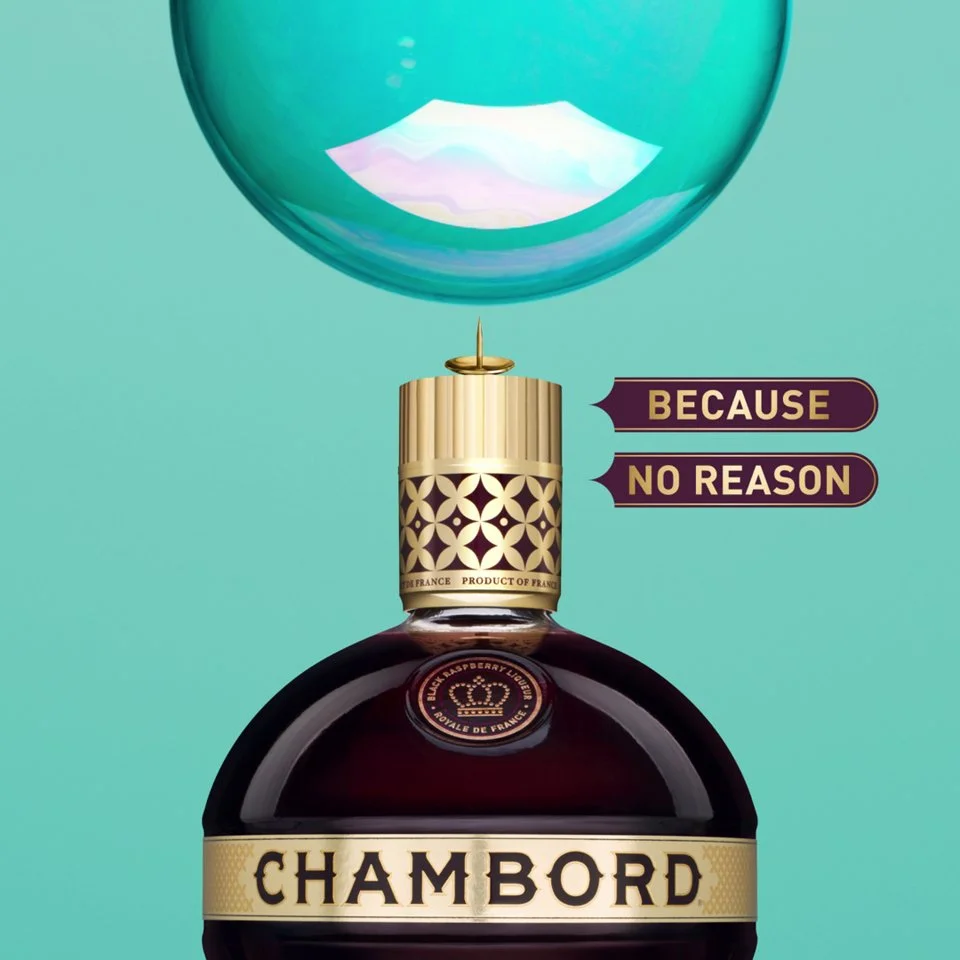 Chambord has a beautifully distinct bottle. An ornate orb, harking back to the days of Louis XIV. It feels special, and this was the problem. Our audience liked to put it in the cupboard and save it for a special occasion. But you don't need a special occasion to drink Chambord. If you like it, drink it. Why? Because No Reason. We took this line and attitude into everything we did, with the line encouraging people everywhere to follow their 'boom boom boom' and do what they like in everything they do. We relaunched Chambord's new identity in everything from packaging, to social channels, to the Chambord website (visit chambordchannel.com and say you are from the US at the age gate).